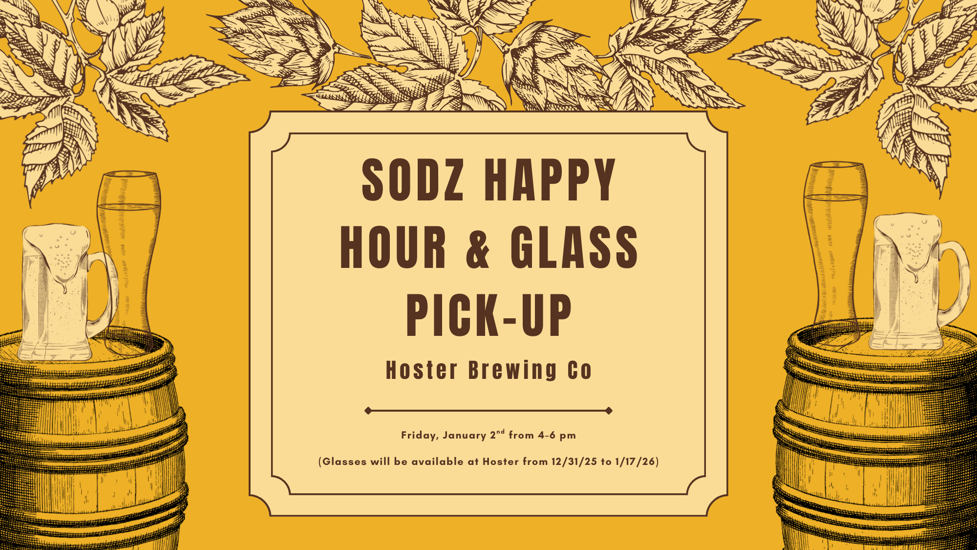 - We’re also scheduling a SODZ Happy Hour at Hoster for Friday 1/2/26 at 4 pm. That way picking up your glass can be a social occasion, and it’s also Firkin Friday at Hoster!